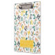 This clipboard is ideal for back-to-school season, providing a trendy and stylish way to organize papers, assignments, and projects. The lively green, white, yellow, grey, and orange color palette adds a cheerful touch to any classroom or home study area.