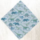 Lots of blue dinosaurs, Tyrannosaurus rex, Spinosaurus, Stegosaurus, Diplodocus and Triceratops on a blue background. Original art by Nic Squirrell.