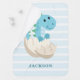 A sweet dinosaur boy baby blanket. Easily add a name for a custom baby shower gift.