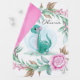 You will love this cute pink and green dinosaur with a butterfly at her nose and pink peony