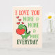 This Valentine's card features a cute dinosaur holding a heart with vibrant handwritten typography "I love you more & more & more everyday". You can easily customize the text inside the card or just delete it.