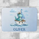 Personalized adorable Captain Dino Sailboat blue bath mat! Picture a charming dinosaur captain navigating the high seas aboard a charming sailboat. This captivating design blends cuteness with adventure, perfect for inspiring imaginative play.