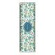 Dinosaur theme kids ruler features a cool pattern of prehistoric animals such as Tyrannosaurus Rex and Triceratops, a volcano, "Roar!" text, tropical monstera leaves, palm trees and dinosaur footprints on a light blue background. The navy blue center can be personalized with your child's name. Original artwork KL Stock