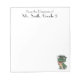 Imagine surprising your favorite teacher with this simple but fun Notepad or buying it for yourself. Design features the text "From the Classroom of Mr. Smith, Grade 5" along the top (which is customizable) and an illustration of a cute, adorable T-Rex dinosaur wearing black glasses and holding a pencil located on the bottom right of the Notepad. Fun item to add to the classroom!