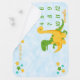 A Cute baby Dinosaur green Tyrannosaurus Rex ( T-Rex) and a Yellow brontosaurus on a blue cloudy background with colorful blue green and yellow stars. This monthly growth tracker is a beautiful way to record and capture your baby's milestone moments as they grow and great as a keepsake. Personalize with your baby name and birth information. Ideal as a baby shower gift .