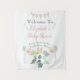 Welcome your guests with this adorable Baby Shower Welcome Sign Tapestry that features precious watercolor baby dinosaurs anxiously awaiting their new friend to "hatch". It is very easy to personalize with your own message and name. A beautiful watercolor combination of green, blue, orange, red and yellow.