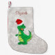 Cute Dinosaur With Santa Hat ,Glittery Bokeh Small Christmas Stocking