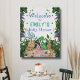 Adorable welcome board featuring cute dinosaurs and rustic watercolor greenery. Matching items available in our store!