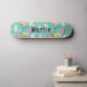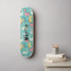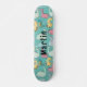 Cute Dinosurscustom name skateboard. Skateboard makes a great gift idea for a girl or a boy who loves dinosaurs and skateboarding. The board is designed with cool bright white, yellow, pink dinosaurs. Personalized with name in black calligraphy script lettering on right area of board. CLICK PERSONALIZE TEMPLATE OPTION AND ENTER NAME.