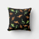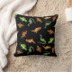 Cute Dinosaurs on Black Background Throw Pillow