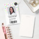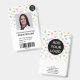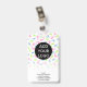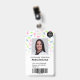 A modern, and professional cute watercolor dinosaurs pediatrician doctor or nurse photo id badge with logo and barcode.