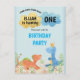 Cute Dinosaurs Playing Boy 1st Birthday Party Invitation Postcard