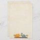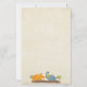 Stationery paper with a cute design featuring 2 dinosaurs. A brontosaurus and a triceratops. Created with watercolors.
