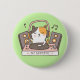 Button of a cute doodle of cat with orange and brown patches. It is scratching the mixtable machine with its paw and wearing a headphone just like a disc jockey. For music, club and cat lovers. Background colour can be changed.