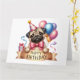 Cute Pug dog birthday card. Beautiful dog with some colorful balloons and presents.