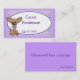 Very cute children's calling card with lavender stripes, white oval text area and a sweet cartoon Chihuahua dog. Text is fully customizable in style, size and color.