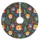 The cutest dogs decorate this festive tree skirt that is so delightful for under your Christmas tree. Your pet lover family and friends will adore it. The design is inspired by the festive and colorful art of fauvism with a bit of a folk art flair. The black background emphasizes the colorful appearance. Alongside the pet images are fun and whimsical Christmas trees, greenery, and imaginative berries, leaves, and other decorative touches of the winter holiday season.
