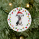 Lightweight, smooth, pure white ornament with nice sheen. Perfect size to be seen from across the room ... and to attract closer inspection! Price was great for ordering enough for the whole family! Clear, bold black design just as requested. Matches the order exactly. Just so nice!