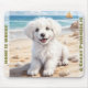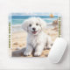Cute Mouse Pad featuring an adorable white dog Great Pyrenees puppy on the beach. Makes a cute personalized stocking stuffer or birthday gift for kids and all the dog lovers. Easily personalize the text or leave it blank. - Kate Eden Art