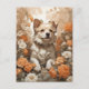 cute dog in flowers postcard