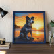 Cute Dog on Beach at Sunset Poster