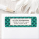 Address labels designed designed with a repeating pattern featuring a cute smiling doggy with a bone. Green background.. A white nameplate with a black border layered over top with your name and address inside.