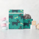 Cute Dog Pattern with Bone on Green Background Wrapping Paper