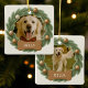 Cute Dog Photo Wreath Name Holiday Christmas Ceramic Ornament