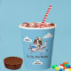 Design features a cute dog wearing a pilot's helmet and goggles flying through blue sky surrounded by white puffy fun clouds with his Cessna airplane. This cup sets the tone for a party everyone will love.