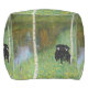 Cute Dog Pug Gustav Klimt Forest Square Pouf.