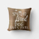 Trendy gold copper background with mixed typography, "A spoiled loved dog lives here'