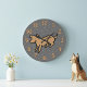 Charming wall clock for dog lovers. Decorated with a cute cartoon illustration on a playful dog accompanied with a small bone background print. The design includes large bold hour numbers. The combination of dark gray and light brown make a fine neutral palette that's easy to fit with different home decoration styles. Makes a lovely wall accent for your living space or a wonderful gift for dog lovers.