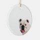 Lightweight, smooth, pure white ornament with nice sheen. Perfect size to be seen from across the room ... and to attract closer inspection! Price was great for ordering enough for the whole family! Clear, bold black design just as requested. Matches the order exactly. Just so nice!