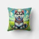 Adorable illustration of a happy dog with bright eyes and a pleasant smile, sitting in a lush green meadow under a sunny blue sky. Perfect for concepts of animals, joy, and nature.