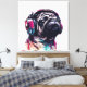 Cute Dog with Headphones water color illustration Canvas Print