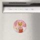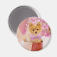 A magnet with an adorable Christmas dog wearing a cute pink plaid bow tie. This tiny little pet is sitting inside a whimsical hat box. A white tree decorated with pink lights in the background. The lights are blurred giving it a magical bokeh effect. Darling Christmas themed photograph. Perfect for dog lovers.