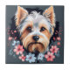 Cute Dog Yorkshire Terrier Flowers Ceramic Tile
