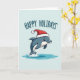 Cute Dolphin Happy Holidays Santa Hat Card