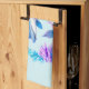 Kitchen towel with an adorable illustration. A blue and purple dolphin surrounded by pretty colorful underwater florals.