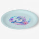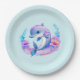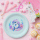 Paper plates with an adorable illustration. A blue and purple dolphin surrounded by pretty colorful underwater plants.
