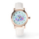Watch with an adorable illustration. A blue and purple dolphin surrounded by pretty colorful underwater florals.