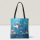 Personalized cute dolphin swimming under the sea tote bag