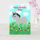 Illustration of a cute donkey trotting across a flower filled grassy meadow. Easily personalise this donkey birthday card by editing the template text. Lovely kids birthday card. Thanks for viewing my designs.