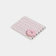 This cute design is a donut with pink icing and sprinkles with a light pink background.