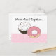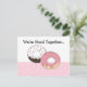Two frosted donuts with sprinkles, a soft pink border with little white dots. A sweet message that says 'we're good together'