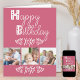 Cute Doodle Typography Pink 3 Photo Birthday Card