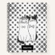 Adorable black and white illustration of a cute cat couple on a dotty background. Optional personalized label.