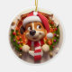 Cute Double Sided Dog Busting Through Ceramic Ornament