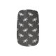This design features a cute pattern of white dragonflies silhouetted on a black background.