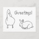Cute and simple drawing of a duck looking down at a rabbit, with the text, Greetings, is printed on coloring postcards. The text can be easily customized on the template form. Fun idea for Easter and anytime for some coloring fun. Thank you for shopping at CherylsArt on Zazzle.